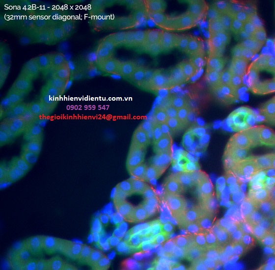 Sona 4.2B-11 Màng cảm biến 2048×2048 và nhỏ hơn 6,5 µm pixel. Lý tưởng phù hợp với tiêu chuẩn và độ phóng đại 40x và 60x kích thước cổng kính hiển vi.